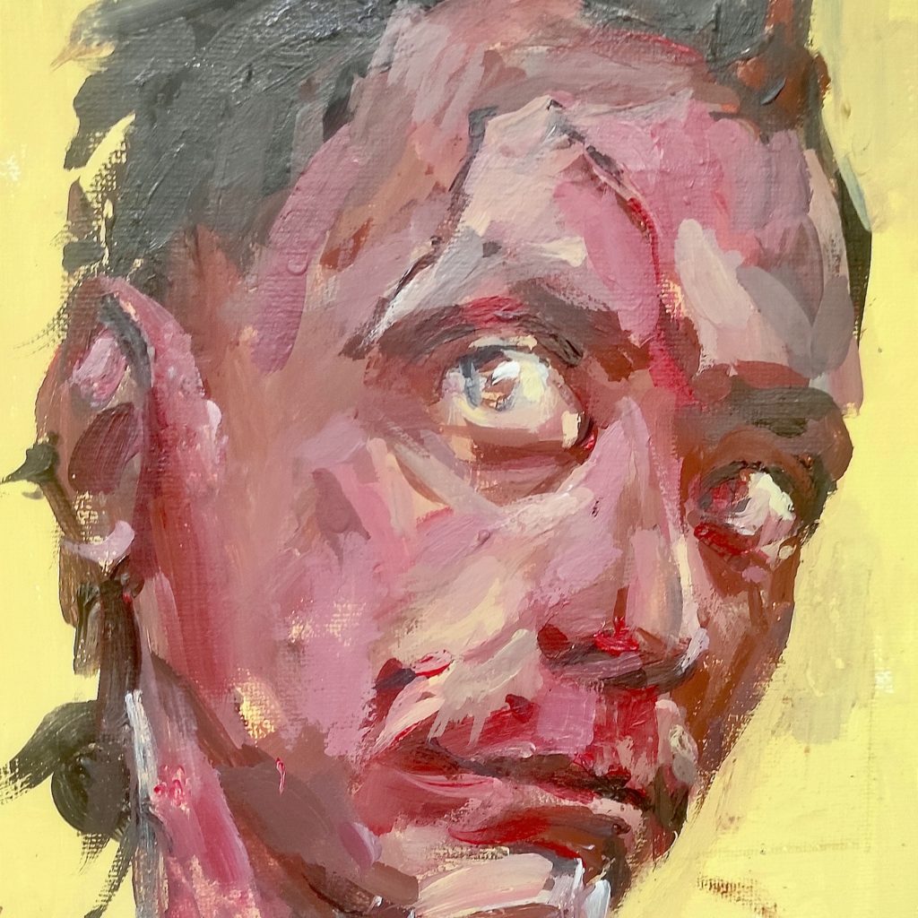 Peinture de format 100 × 100 cm, réalisée en 2022 à Paris au début de la guerre en Ukraine. L’œuvre repose sur un travail expressif de la matière, construit autour du visage, du mouvement de la tête et de la tension du regard. La composition traduit un état émotionnel aigu, marqué par les événements tragiques de Marioupol et l’incertitude des premiers mois de la guerre.