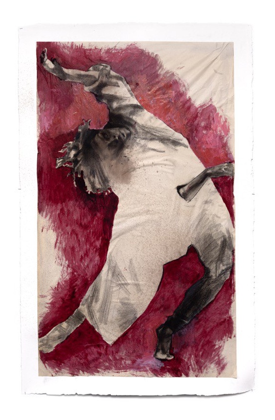 Œuvre de la série grand format « Danse sur la toile », consacrée à l’étude du mouvement comme phénomène naturel, plastique et anatomique. Les feuilles à l’échelle humaine créent un effet d’immersion : le spectateur se retrouve plongé dans l’espace du geste. Les compositions sont construites à partir de mouvements réels d’un danseur, afin de fixer un moment chorégraphique avant sa disparition.