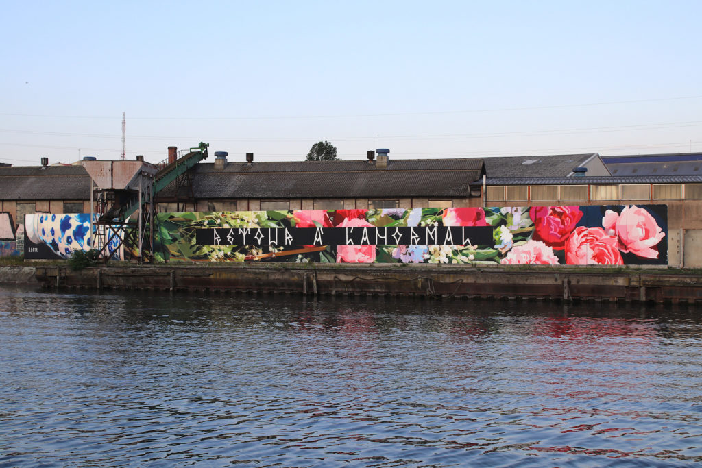 Le choix des vagues et de la mer comme élément liquide évoque pour moi les personnes migrantes qu’on laisse mourir en mer. Un élément qui résonne aussi avec l’histoire du lieu car ce bâtiment était pendant un temps un passage important de trafic d’humains et il était occupé par des passeurs et des migrants.