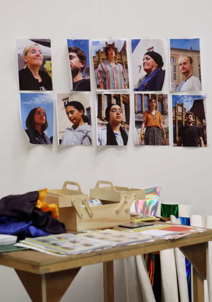 Atelier de Sarah Feuillas à Fructose, Dunkerque. Photographies des ateliers de peinture sur paupières, boîte de maquillage, recueil des géants.